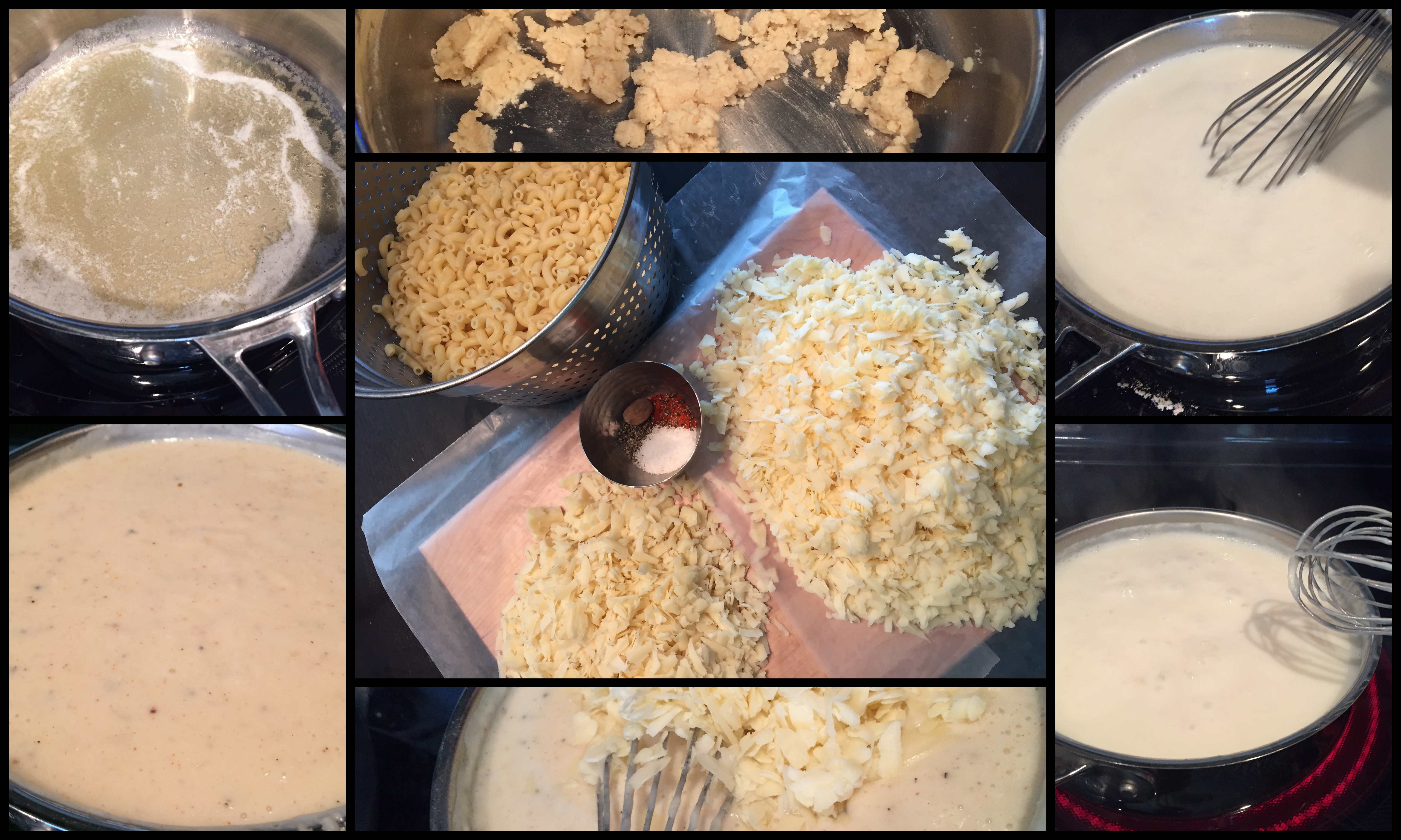 1. Fill a large pot with water and make elbow macaroni noodles to manufacturer’s directions al dente. Heat milk in saucepan while preparing rest of ingredients. Transfer the macaroni to a colander, rinse under cold running water, and drain well.
